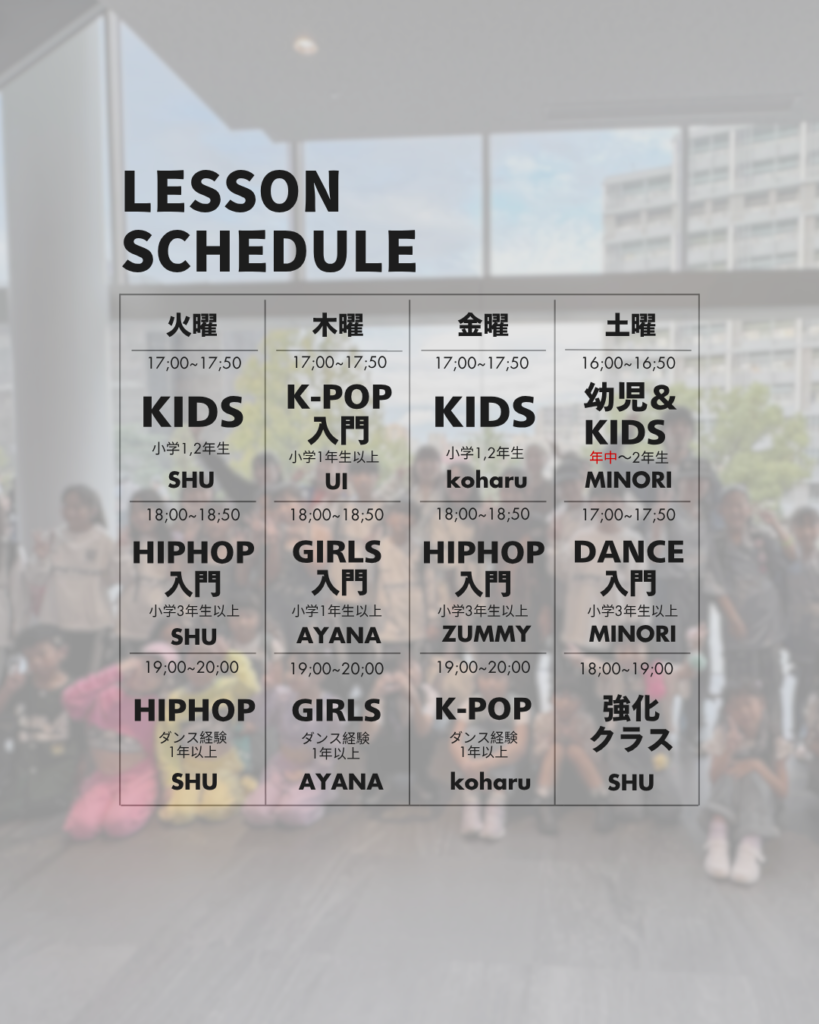 ※K-POP入門クラスは小学生から高校生までの初心者専用クラス
